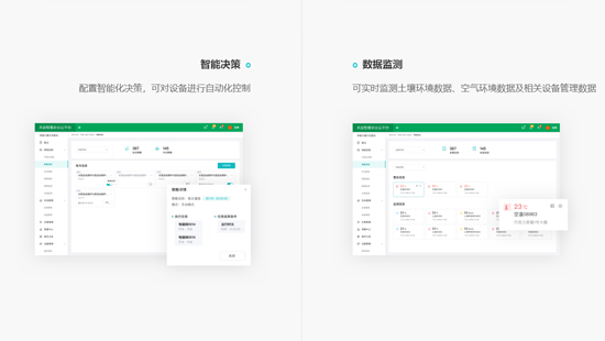 2020年公司專注于智慧農(nóng)業(yè)關(guān)鍵技術(shù)研發(fā),積極探索重慶智慧農(nóng)業(yè)發(fā)展新方向。先后服務(wù)酉陽、石柱、南川、北碚等區(qū)域客戶智慧農(nóng)業(yè)云平臺建設(shè),受到業(yè)主一致好評。公司始終堅持“產(chǎn)品+數(shù)據(jù)+技術(shù)+服務(wù)”的發(fā)展模式,致力于智慧農(nóng)業(yè)整體解決方案研發(fā)和服務(wù)。通過數(shù)據(jù)和技術(shù)雙輪驅(qū)動,實現(xiàn)農(nóng)業(yè)規(guī)模化、精準(zhǔn)化、智能化。